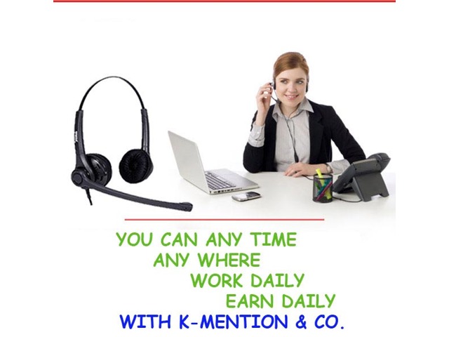 kig9022This is a fully home-based job for everyone. Work consists of Ad posting in internet. You can do this from your home. Just work 2-3 hours per day and earn more money. Required ; Laptop, Desktop with Internet to work from Home. Minimum Qualification 10th above (should have basic knowledge of Internet like browsing and web searching). This job can do every person. Easy work just like Ad Posting/ Ad Promoting (Copy & Paste of provided ad matter) Proper training is provided in office for this work. Daily basis income Rs.150/- to Rs.1,200/- depending on work.For more details about this job contact and meet us at our office. mo. 9898665104 or email info@kmention.com www.kmention.com