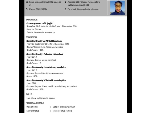 I am a hard working lady willing to work as care work bacause I have experience from college i