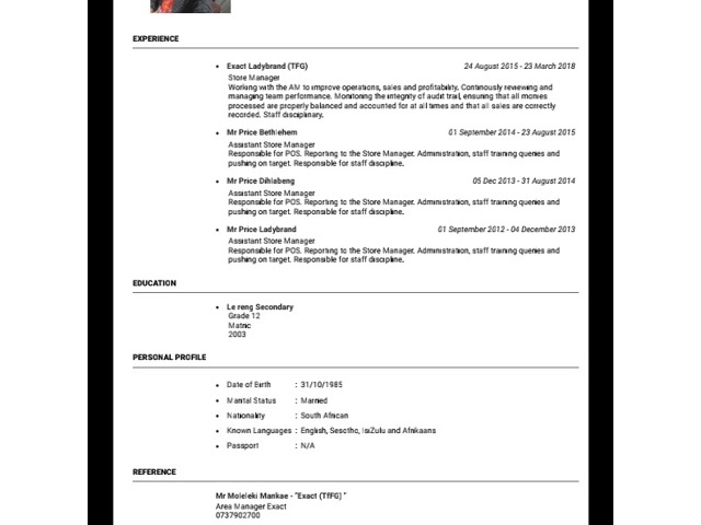 I am a very ambitious and passionate individual who is goal driven. I am a very experienced retail manager. I also have a very polished customer service