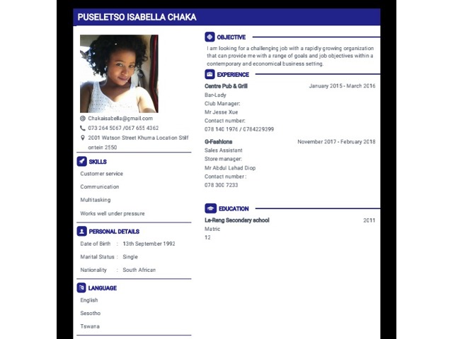 Iam looking for a job that will inspire me to become a better person in and outside my work place. I want to represent the company name wherever iam by working hard and being open to new challenges as well as staying dedicated to my job.