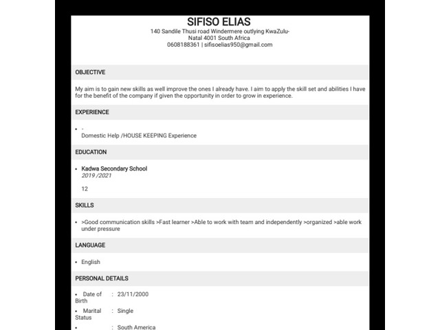 My aim is to gain new skills as well improve the ones I already have. I aim to apply the skill set and abilities I have for the benefit of the company if given the opportunity in order to grow in experience.