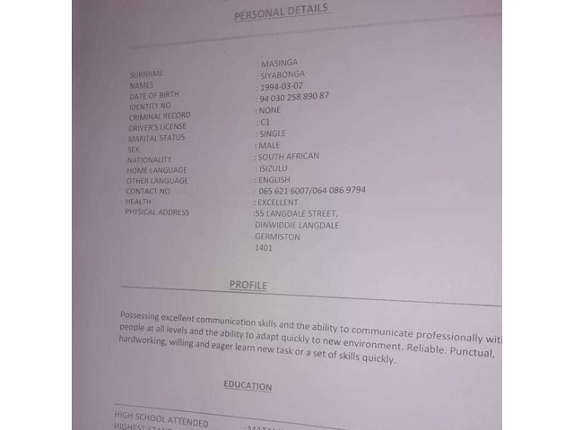 Hard working person..willing to adapt with any work condition.listing person.im very friend willing to work in a team with others.