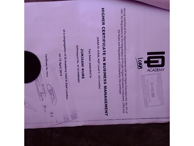 I am looking for a job that will give me a training for management or supervision.I have matric, business management level 5,and computer Literacy.