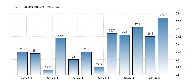 According to Trading Economics, the South Africa’s unemployment rate is 10% higher than it was in 2016. It is the highest unemployment rate since 2004, yet more and more people join the labour force.