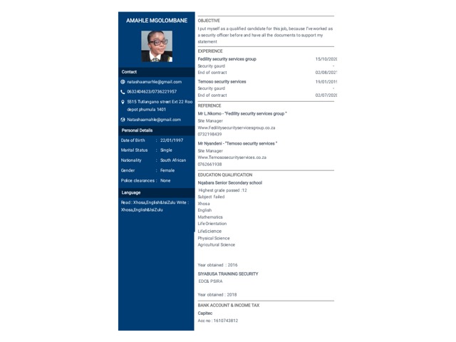 I'm looking for a security job and I have this qualification EDC and PSIRA