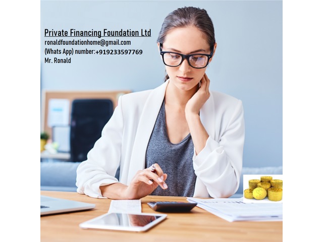 Do you need Finance? Are you looking for Finance? Are you looking for finance to enlarge your business? We help individuals and companies to obtain finance for business expanding and to setup a new business ranging any amount. Get finance at affordable interest rate of 2%, Do you need this finance for business and to clear your bills? Then send us an email now for more information contact us now via ronaldfoundationhome@gmail.com